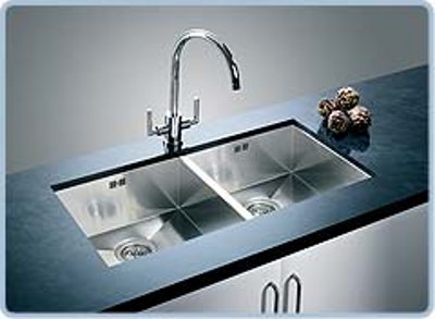 Decription: Undermount Bowls with 3.5" basket strainer wastes and overflow.Fixing Kit 212 330 Included.Bowl depth: 175/175mmCabinet Width Minimum: 90cmCut out size: 825 x 400